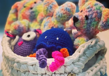 Crochet is an amazing art that can create beautiful and textured pieces like bags, baskets, toys and blankets. By using a combination of different crochet techniques, Jaz creates unique and creative designs that reflect love and style. Crochet is not just a craft, it's a way of expressing oneself. Whether it's through a cozy blanket or a cute toy, each piece tells a story and holds sentimental value.